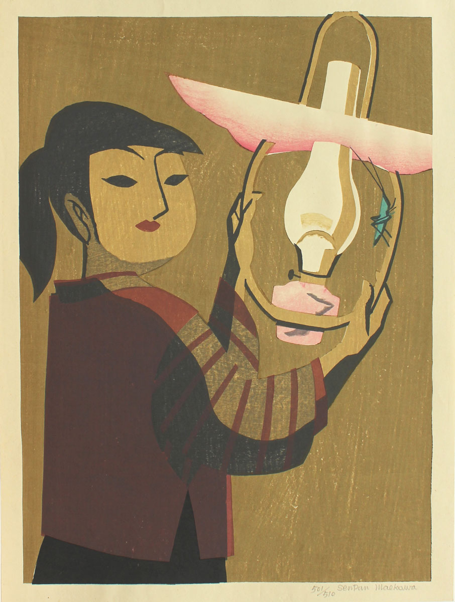 Rampu - Lamp Paper size: 30.7 x 41.1 cm. Number 501/510, self-printed in 1959. From the collection of prints assembled in "The Modern Japanese Print, an Appreciation", of which the first 475 copies were turned into a book - this copy is from the small group of unbound copies.